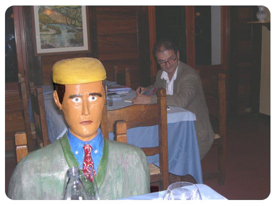 E alla fine, come si fa tra persone di mondo (io no, ma gli editori lo sono), ci siamo ritrovati a festeggiare la fine del romanzo del Signor Arturo davanti a una tavola imbandita e a buone bottiglie. Alla festa abbiamo voluto che fosse presente il protagonista, Arturo Diaz. Il personaggio è un po' lunatico, cosa che non sarà sfuggita a chi ha seguito le sue peripezie. Infatti per riuscire ad averlo con noi abbiamo faticato sette camicie. Volentieri avremmo esteso l'invito ai lettori, ma il signor Arturo ce lo ha vietato, oltre a pretendere di scegliere personalmente locale e menù. Egli ci ha inoltre imposto che la stampa non fosse presente, perciò non è stato possibile eseguire riprese filmate dell'avvenimento. Le foto che lo ritraggono insieme a noi, che troverete pubblicate sul sito, sono state scattate alla fine della serata quando il signor Arturo aveva bevuto abbastanza per non accorgersi del paparazzo che lo ritraeva. Vorrei ringraziare Igor Morini, titolare del ristorante San Biagio Vecchio di Faenza, per la cena squisita che abbiamo consumato, per l'organizzazione della serata e per la scelta dei vini, anche se mi resta il dubbio che abbia pagato una tangente in beveraggi al signor Arturo che (secondo mie informazioni riservate) è stato visto bazzicare nella cantina del locale in compagnia dello stesso Morini uscendone carico di bottiglie di gran marca.
